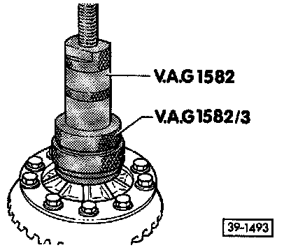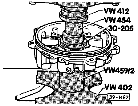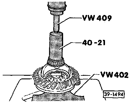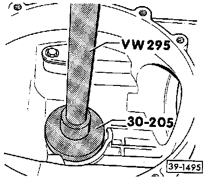 - Place thrust piece (special tool 40-105) against differential housing.