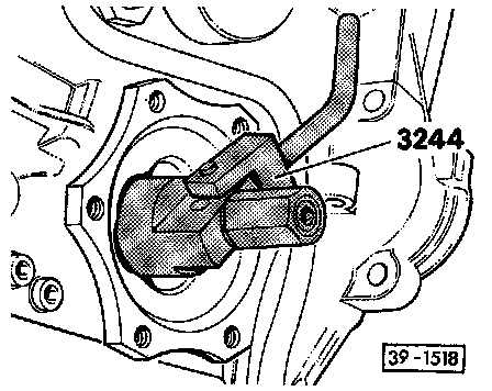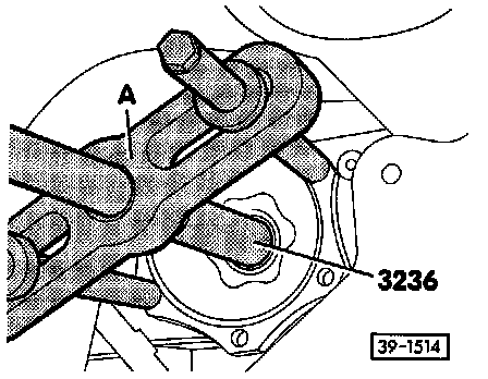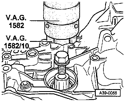- Mount jaws of VAG1582/10 between balls on inner race of grooved ball bearing.