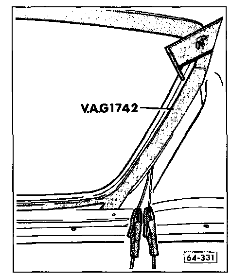 - Connect power supply cables from VAG 1742 and allow adhesive to heat up for about 2 minutes.