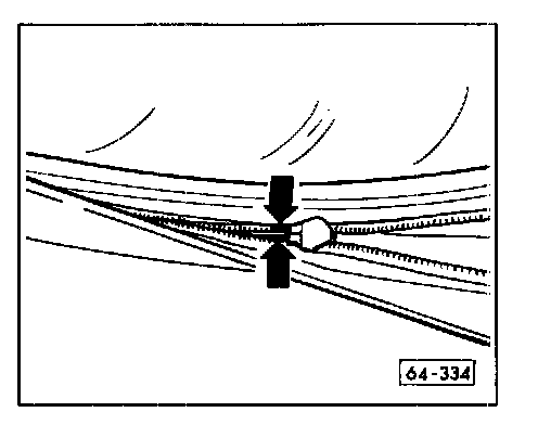 - Bend out terminals on end of heating wire (arrows) between zipper and fabric on left side of window toward bottom.