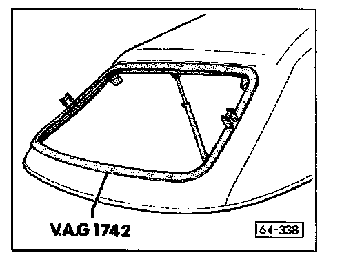 • Outer frame of VAG1742 rear window installation tool must be in uniform contact with convertible top around circumference of window.