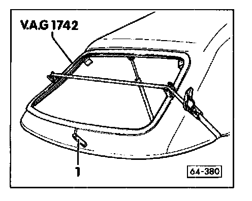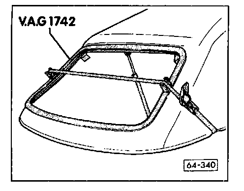 - Let adhesive cool down for 20 minutes with VAG 1742 rear window installation tool in place on convertible top.