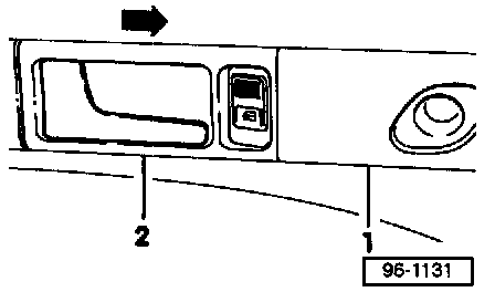 - Push inner door opening handle -2- in direction of arrow and pull out of door panel.
