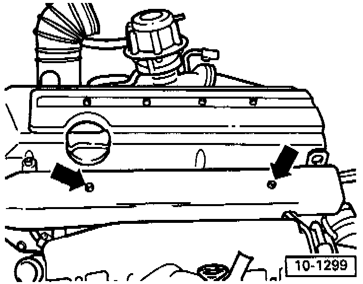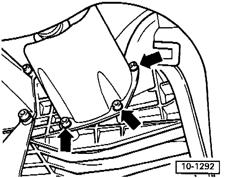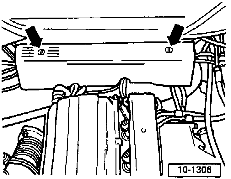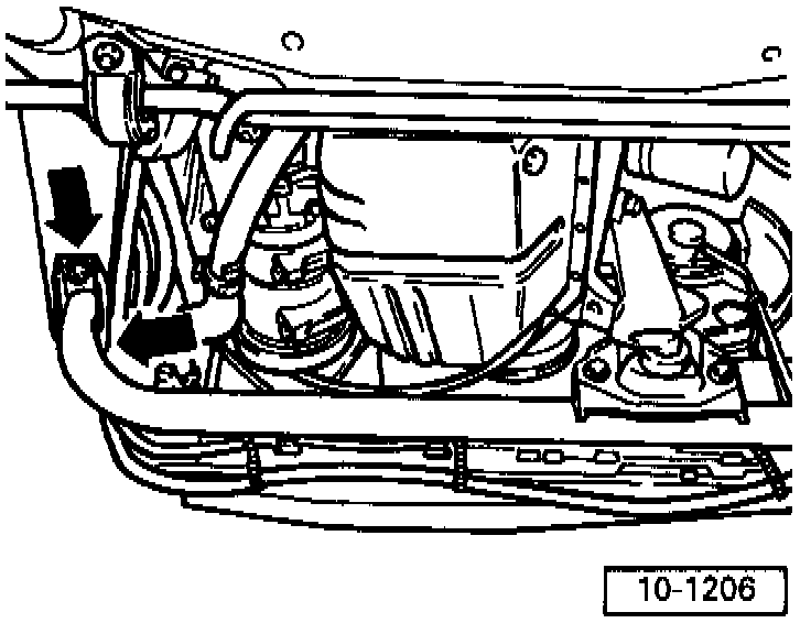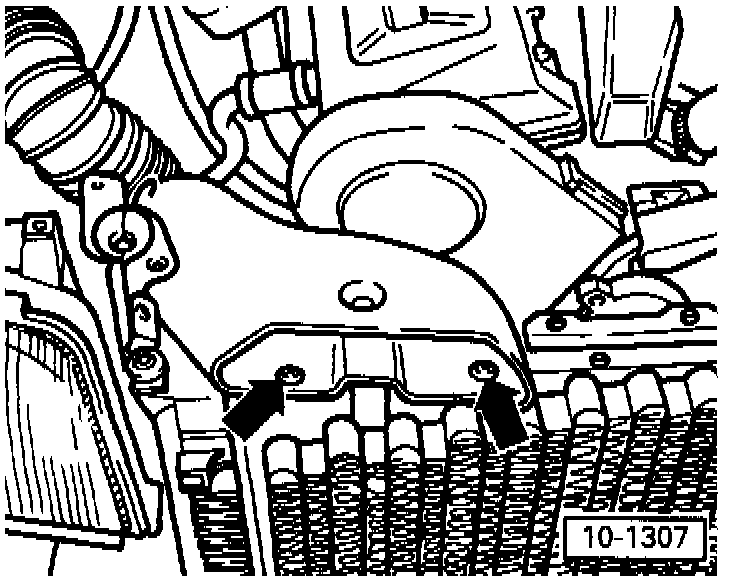 - Unscrew right air duct at radiator (arrows) and remove.
