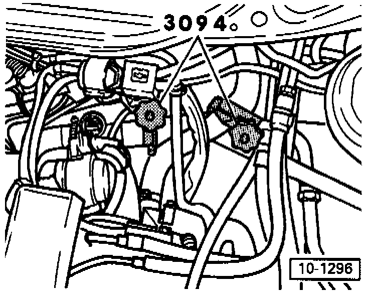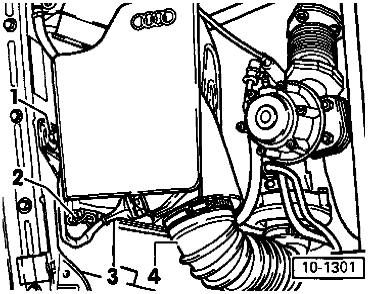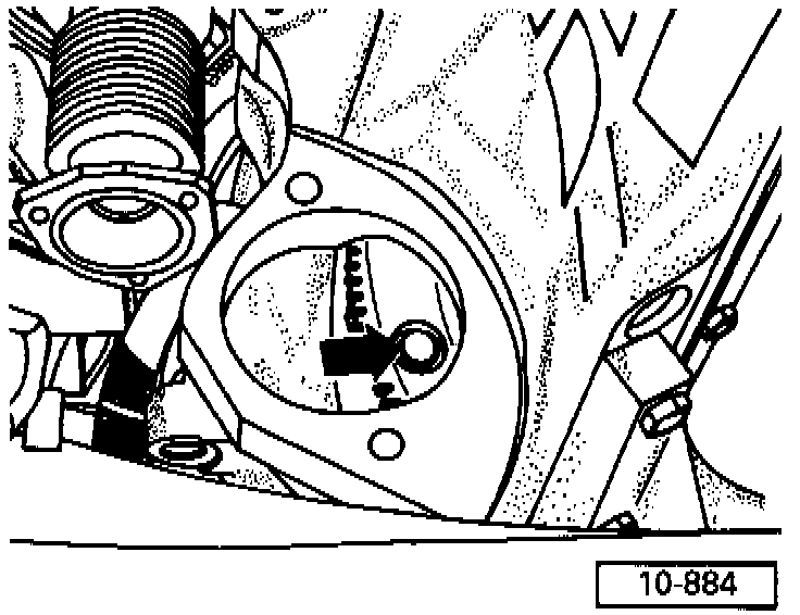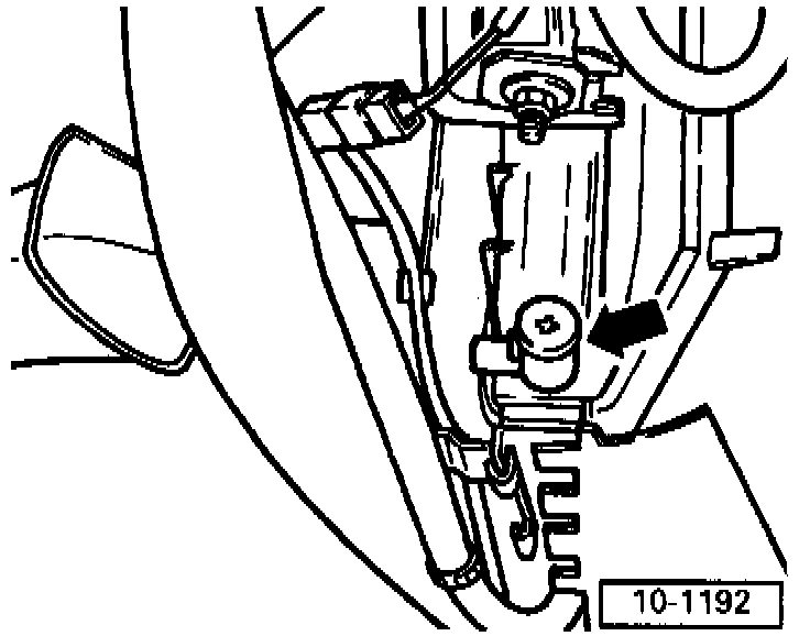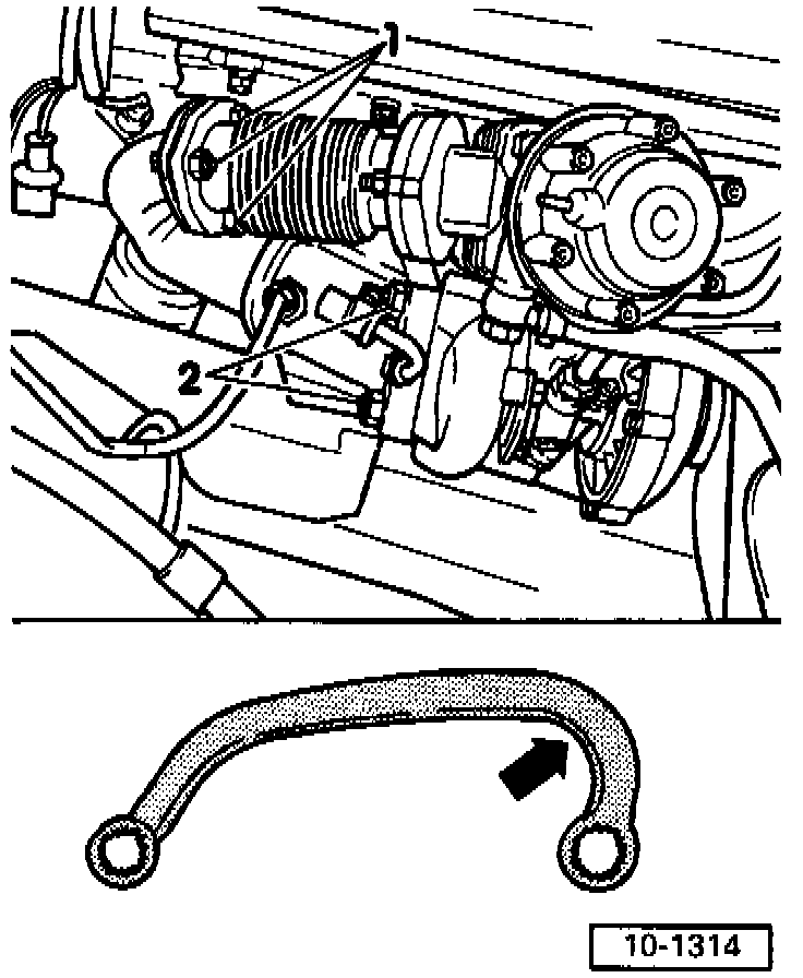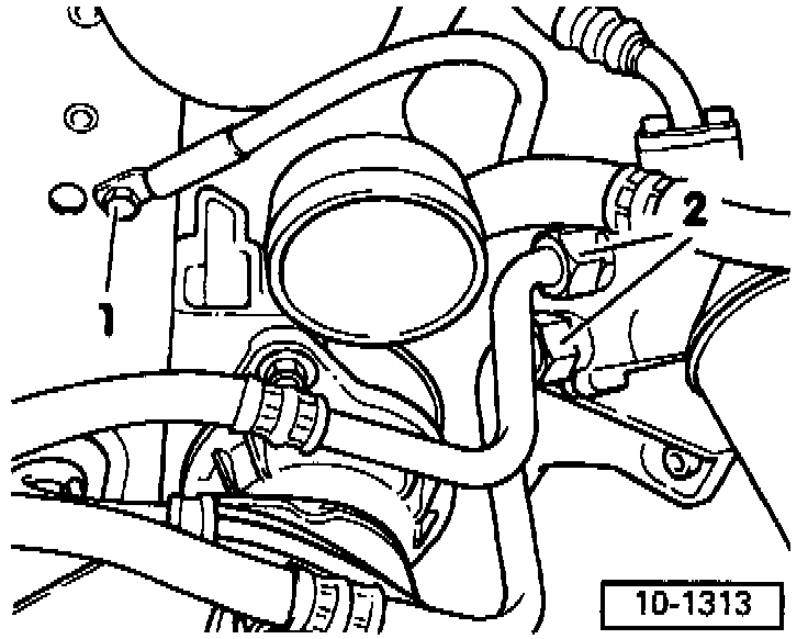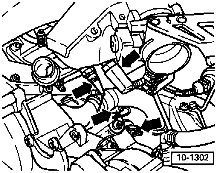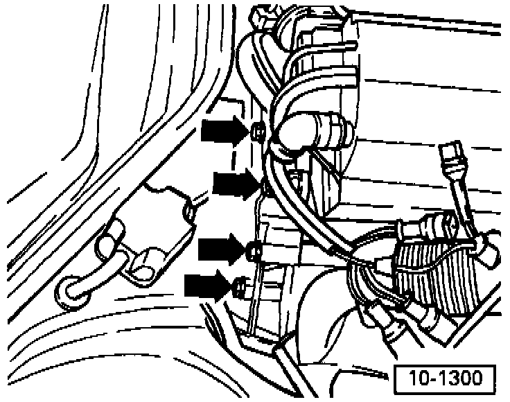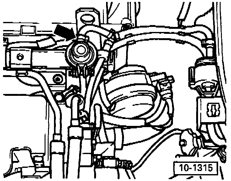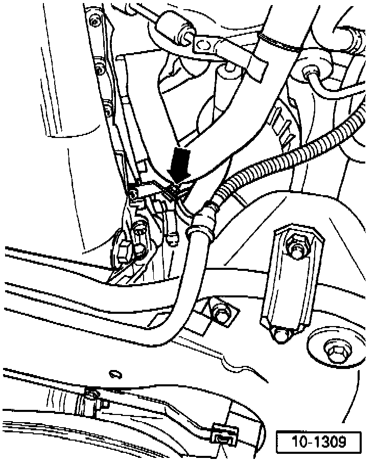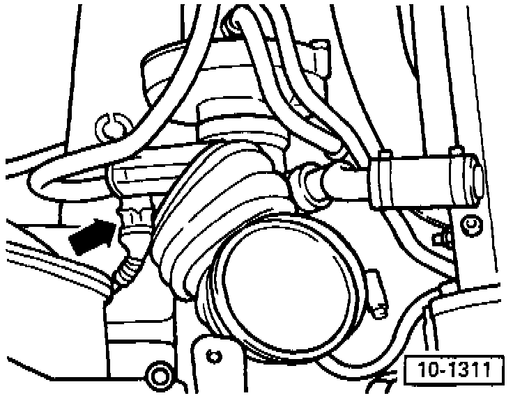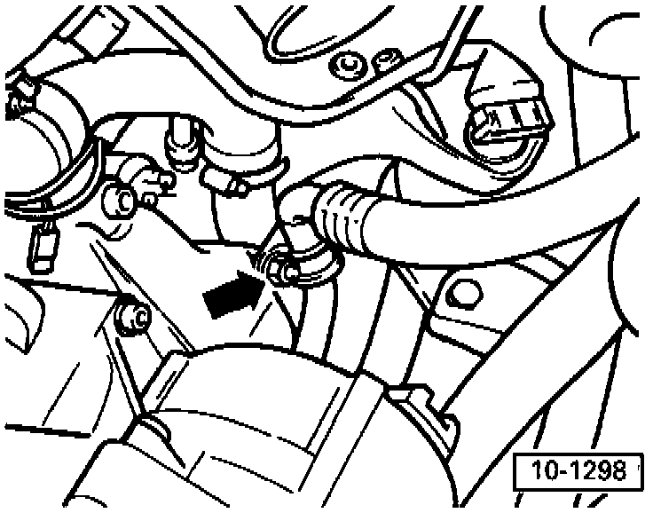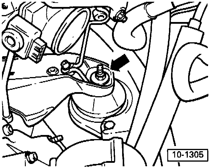 - Ensure sufficient space between engine support and vacuum hose (arrow). Remove hose if necessary.