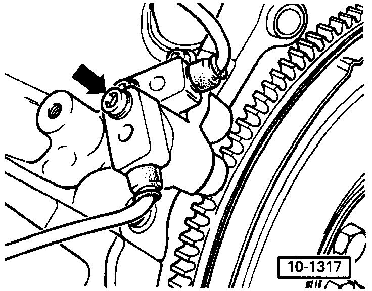 - Unscrew bolts on engine/transmission flange accessible from above (arrows).