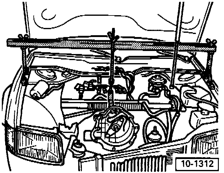 - Position oil catch pan VW 1306 under engine compartment.