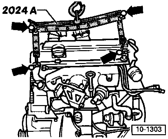 - Lift engine with workshop crane using pins of engine mountings.