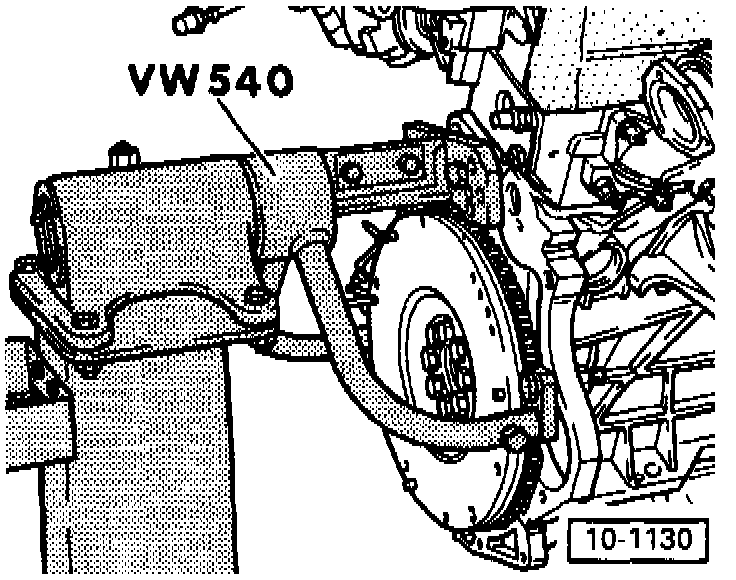 - Secure engine to repair stand with engine and transmission bracket VW 540 in order to carry out repairs.