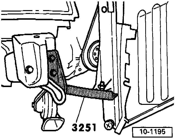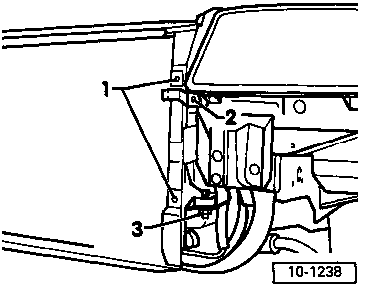 - Unscrew bracket for trim plate (2) from right vehicle side.