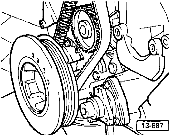 CAUTION: Mark direction of travel of toothed belt with chalk or felt pen before removing. Toothed belt must not be kinked.