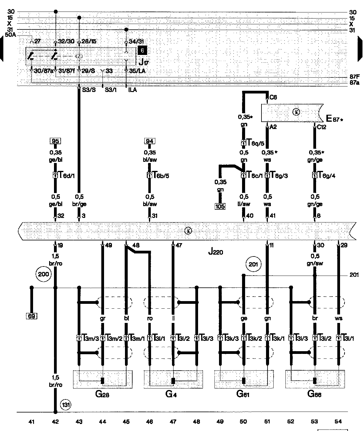 201 - Ground connection -5-, in engine compartment wiring harness