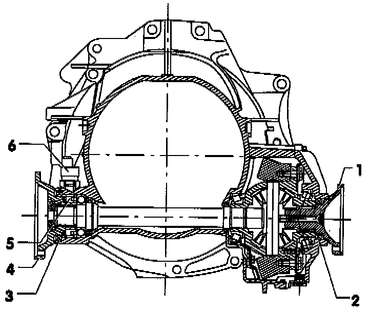 To loosen the flanged nut, screw two bolts into flanged shaft and counter-hold with assembly lever.