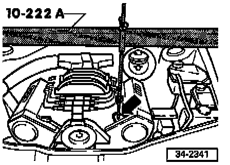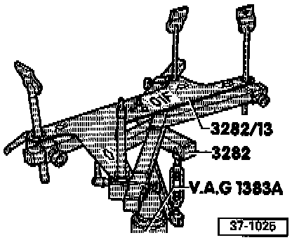 - Place jack VAG 1383 A with transmission support 3282 below transmission and support transmission.