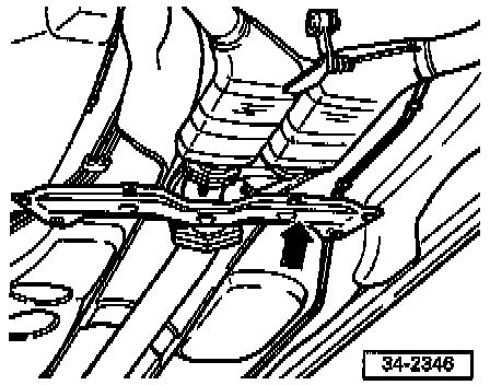 - Remove front crossmember (arrow) below exhaust system.