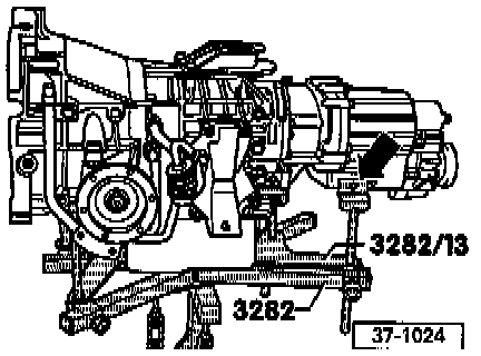 - Secure transmission to transmission support 3282 by bolting support bracket to transmission using securing bolt for bracket of selector lever cable (arrow).