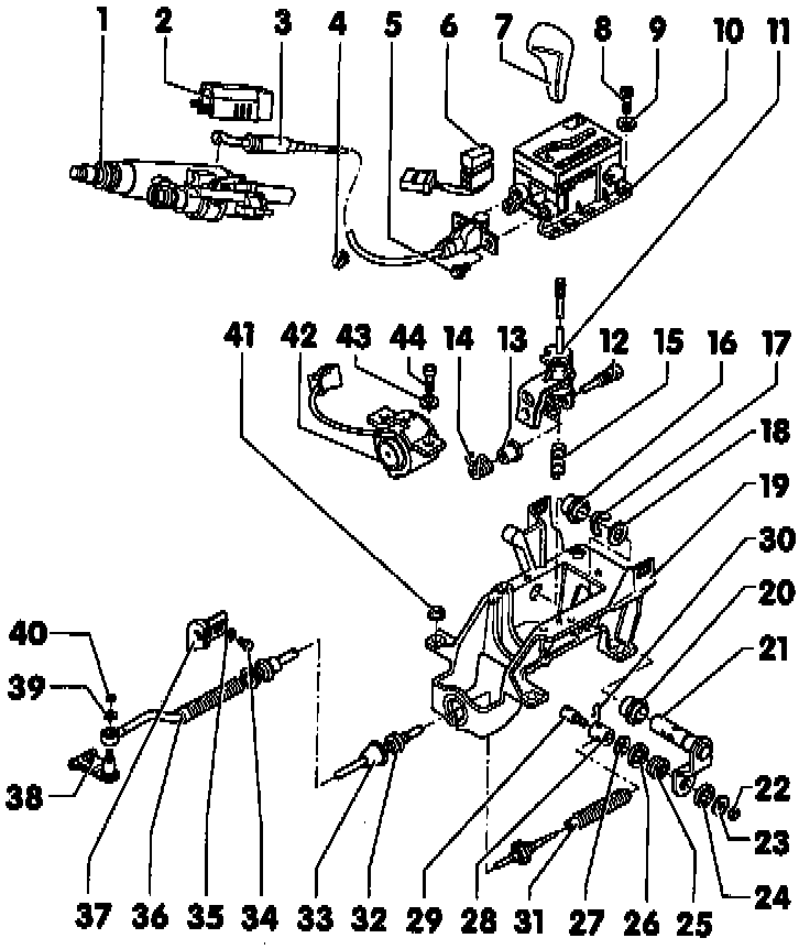 - Lubricate contact surfaces for selector lever -38- and washer -39- with suitable grease before installing