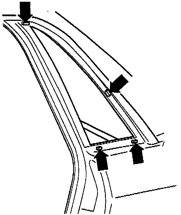 - Using awl, push through adhesive at lower C-pillar and side panel from inside to outside.