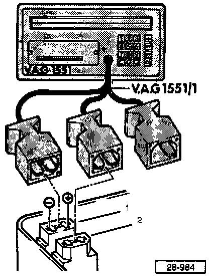 Connect Scan Tool VAG 1551 using adaptor cable VAG 1551/1 to DLC.
