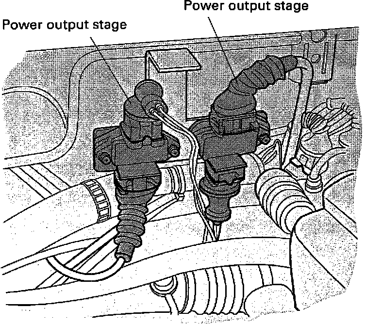 The Power Output Stages are mounted to the engine compartment firewall, behind the cylinder head.