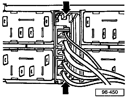 - Carefully pry out safety switch by inserting small screwdriver into recess (arrows) and pushing toward center of switch.