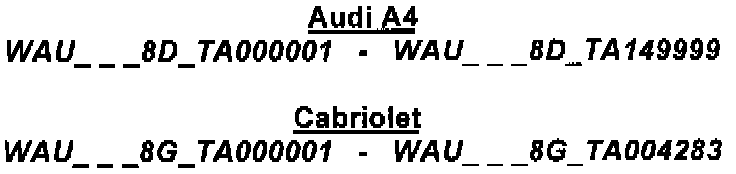The Audi A4 vehicles do not require any parts. The Cabriolet vehicles, however, require the installation of a new bracket, part 8G0 972 633 A. Additionally, some of the Audi A4, as well as Cabriolet vehicles may require affixing an OBD II label.