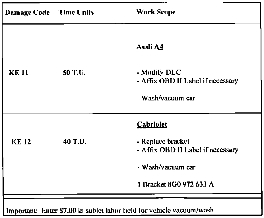 Only A4 owners also involved in the KC Recall Campaign will be notified concerning this action. Therefore, it is important to perform the remedy during the customer's next maintenance, repair or KC recall visit if the V-Crest system shows a "KE" service action code.