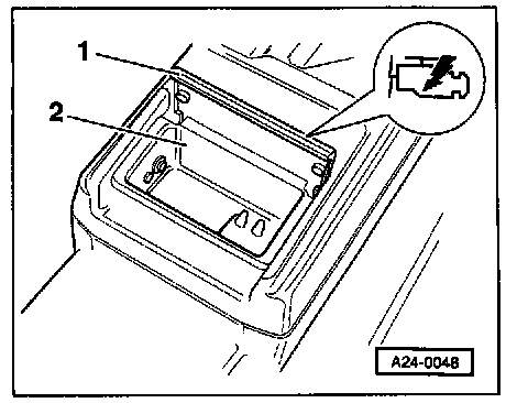 - Open rear ashtray -1- in center console, and remove ashtray insert -2-.