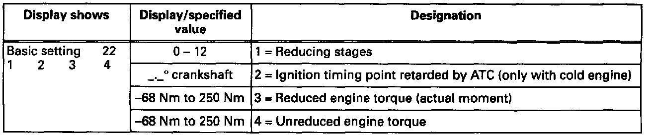 With a cold engine, engine coolant temperature less than 20°C (68°F) the reduction of engine torque is obtained: