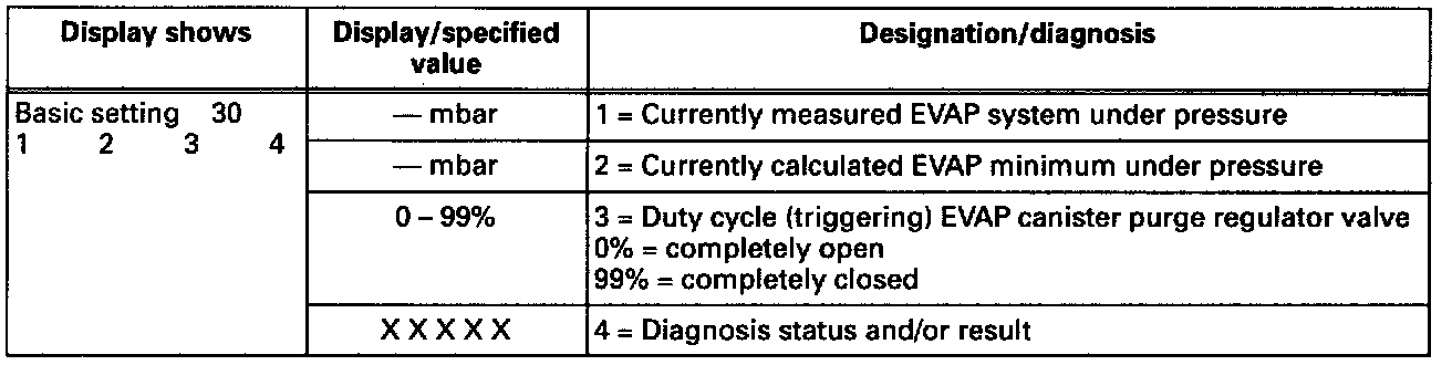 - Since the EVAP system is automatically shut off during "Basic Setting" function 04, display group 030 can only be evaluated using "Read Measuring Value Block" function 08.