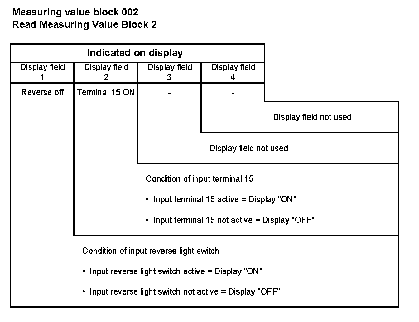 002 1 = Condition of input Reverse light switch