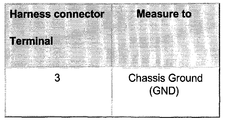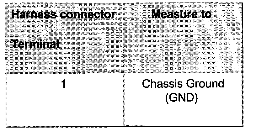 - Check wire connection from terminal 1 or 3 of connector for open circuit and short circuit to Ground (GND):