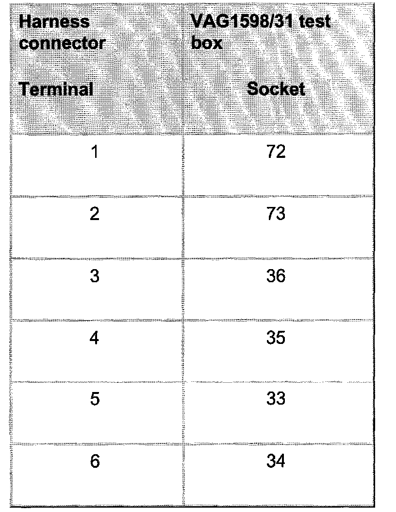 - Connect VAG1598/31 test box at wiring harness to ECM, do not connect ECM. Connecting VAG 1598/31 Test Box