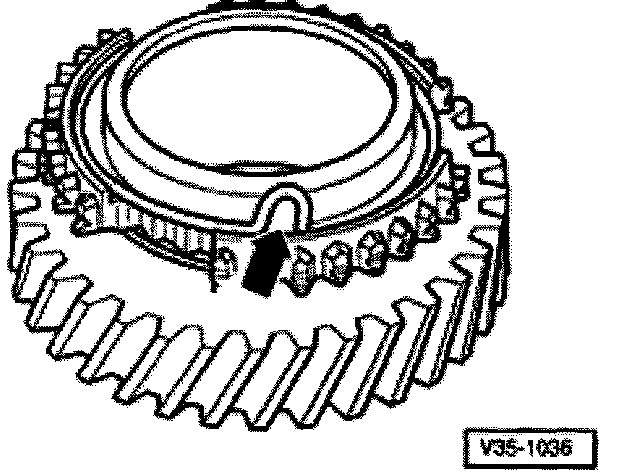 The bent end of the spring (arrow) must be hooked into the hole of the gear.