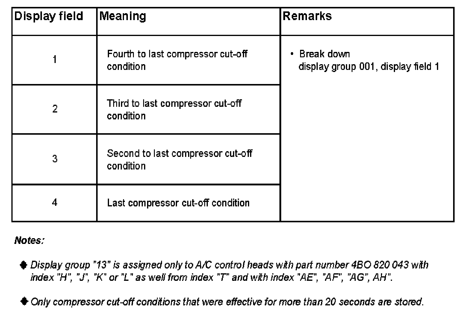 Last four compressor cut-off conditions