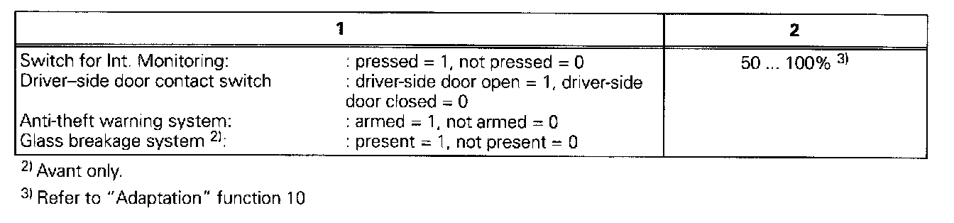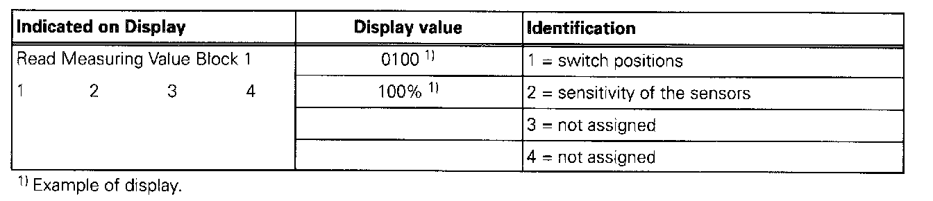 The selected measuring value block is now indicated in standard format. Evaluation. See below.