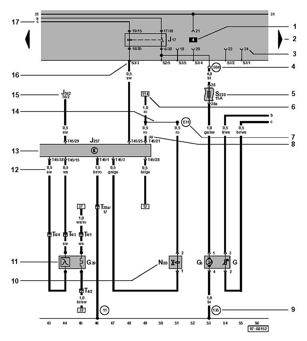 For example: S228 = Fuse number 28, 15 amps, in fuse holder