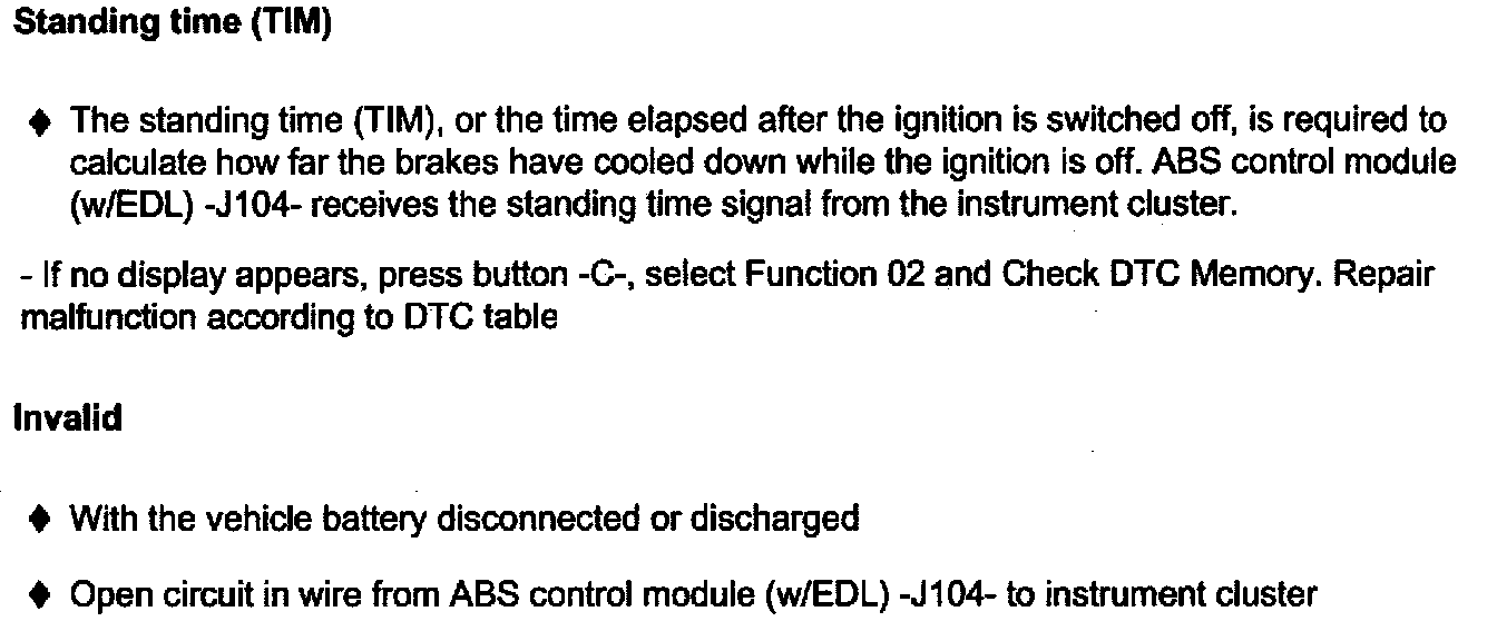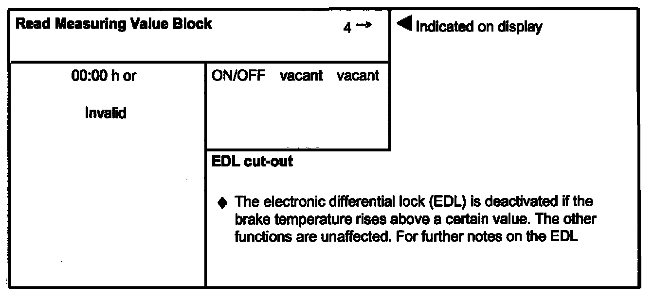 ^ The On Board Diagnostic (OBD) is terminated by ABS control module (w/EDL) -J104- if road speed exceeds 19 km/h.