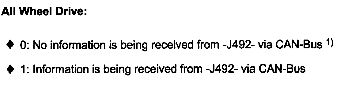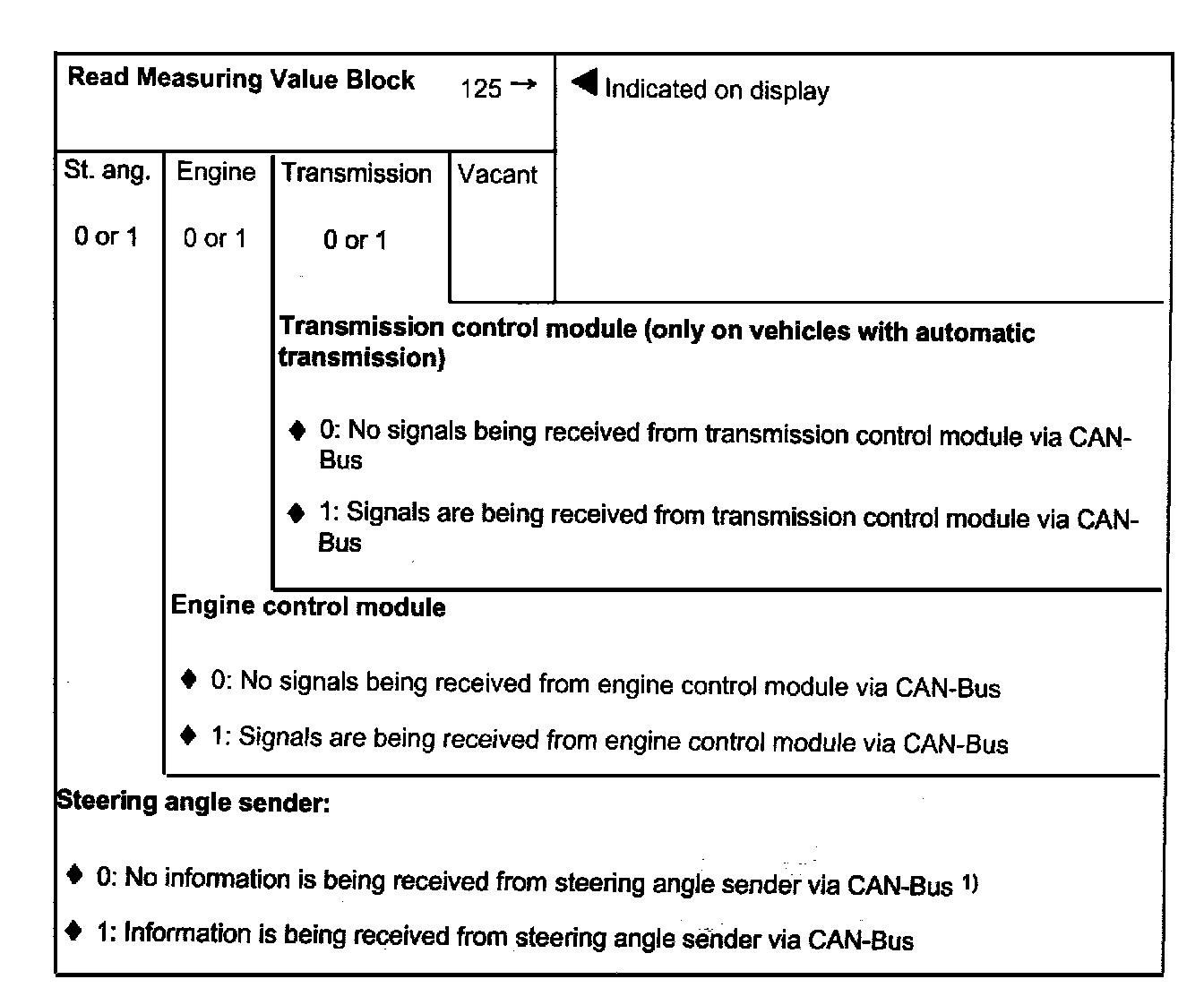 ^ On vehicles with control module No. 4B0 907 389, Display Group No. 125 is vacant, and cannot be selected either directly by entering a number, or by pressing buttons -1- and -3- on VAG1551 scan tool or buttons (arrow up) and (arrow down) on VAG 1552 scan tool.