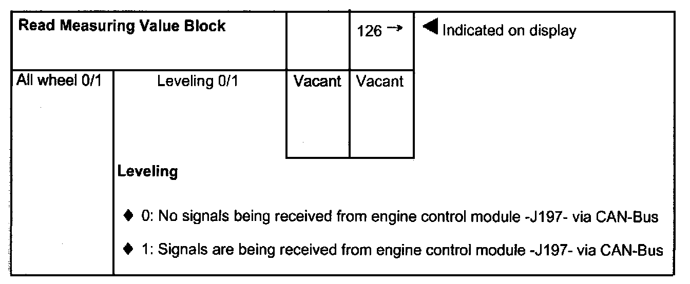 Note: Measuring value block 126 is only valid for A6 Allroad!