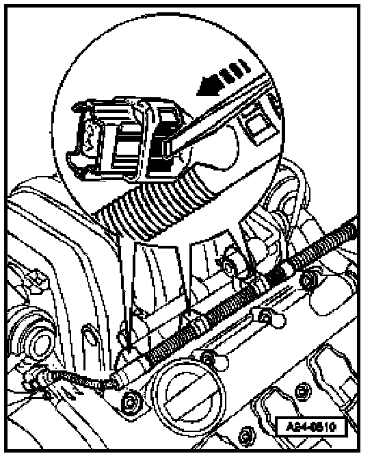 - Disconnect all connectors for injectors of relevant cylinder bank, release connectors underneath for this purpose (arrow).