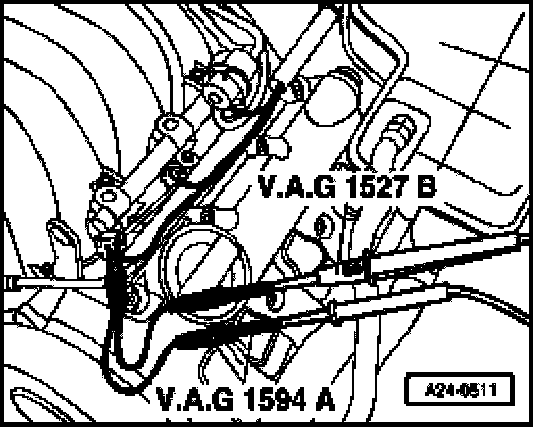 - Connect voltage tester VAG 1527 B with measuring probes and plug-in adapters from VAG 1594 A between terminal 2 (signal) and terminal 1 (positive); the connector remains plugged in.