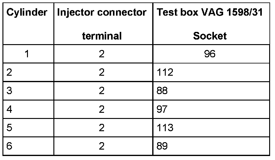 - Connect test box VAG 1598/31 to wiring harness for engine control module; do not connect engine control module. Wiring and Component Testing Using VAG1598/31 Test Box