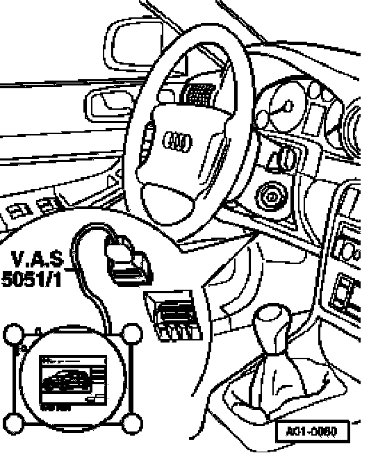 - Connect VAS 5051 Vehicle Diagnosis, Measurement and Information System with diagnostic lead VAS 5051/1.