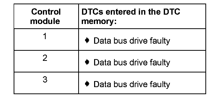 If you are unable to determine any cause in the bus wiring for the DTC "Data bus drive faulty", check to see whether one of the control modules is responsible for this DTC.