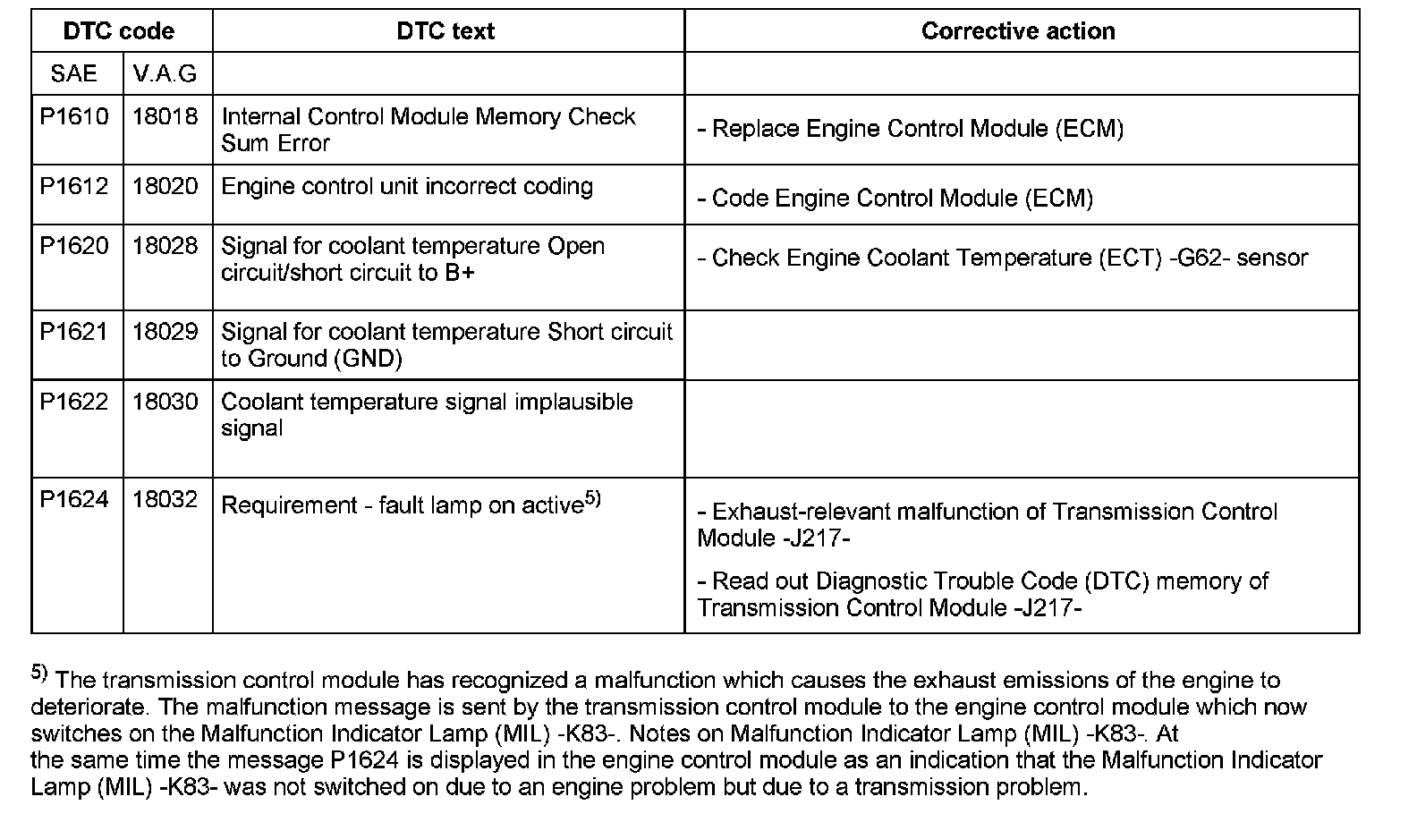 P1610 - P1624: