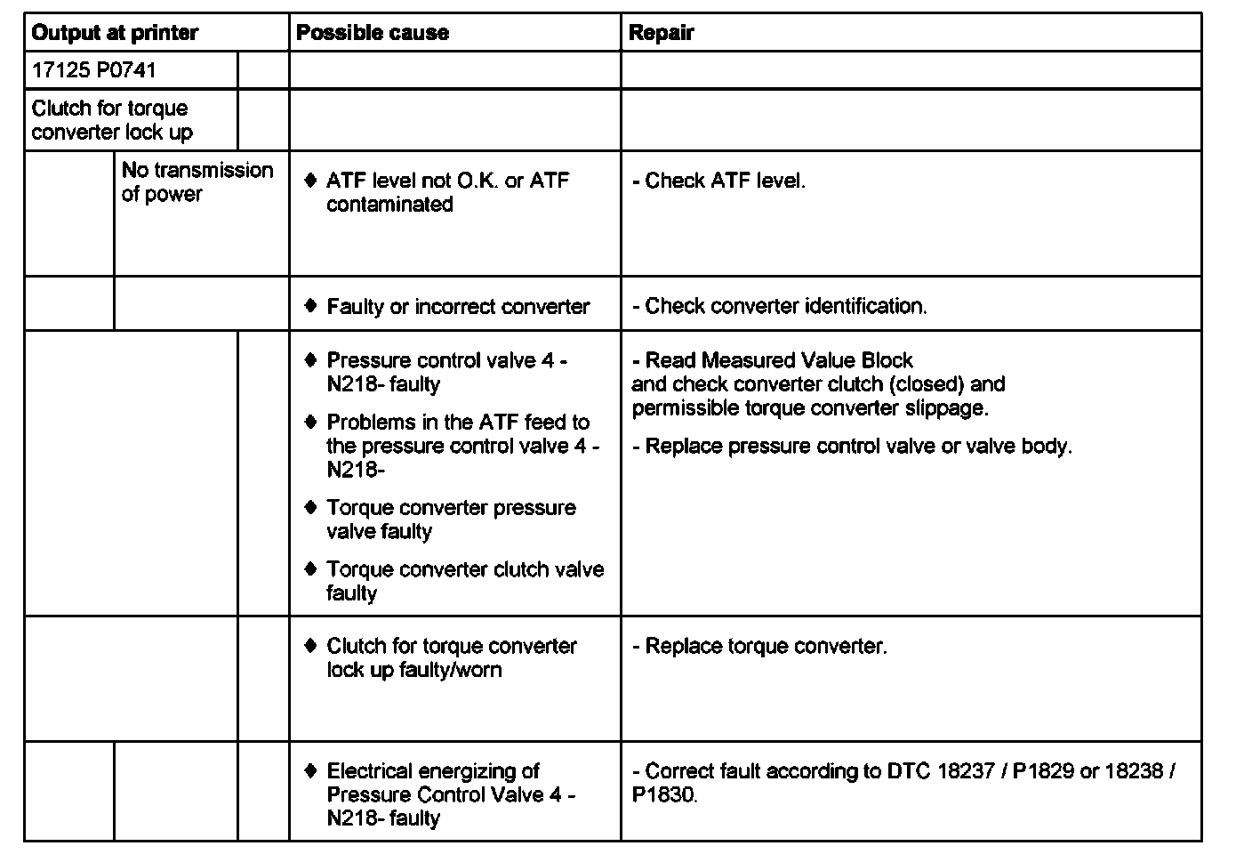 The ratio of transmission input RPM -G182- to engine RPM with the torque converter clutch closed does not match (implausibility).