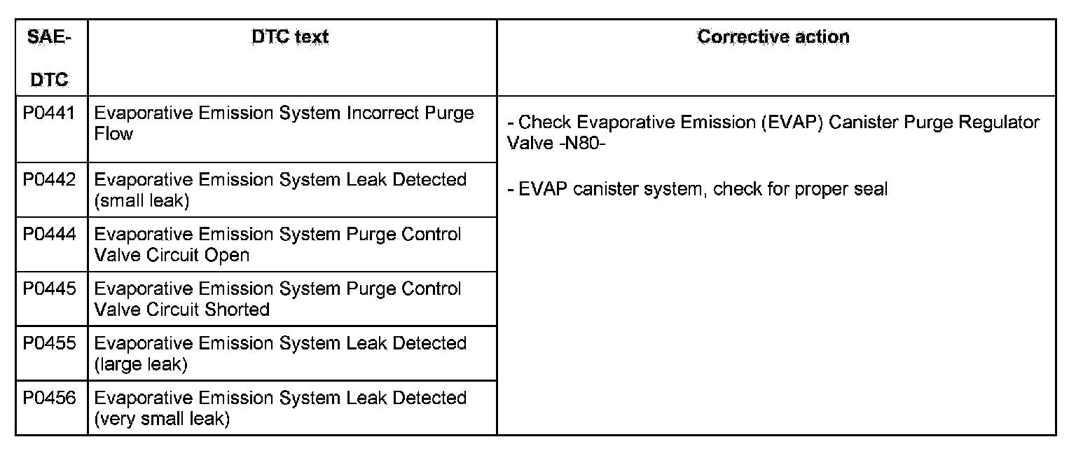 DTC P0441 - P0456:
