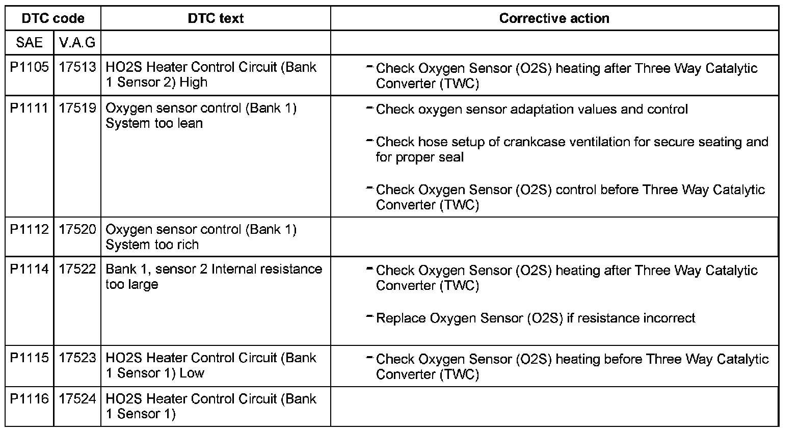 DTC P1105 - P1116: