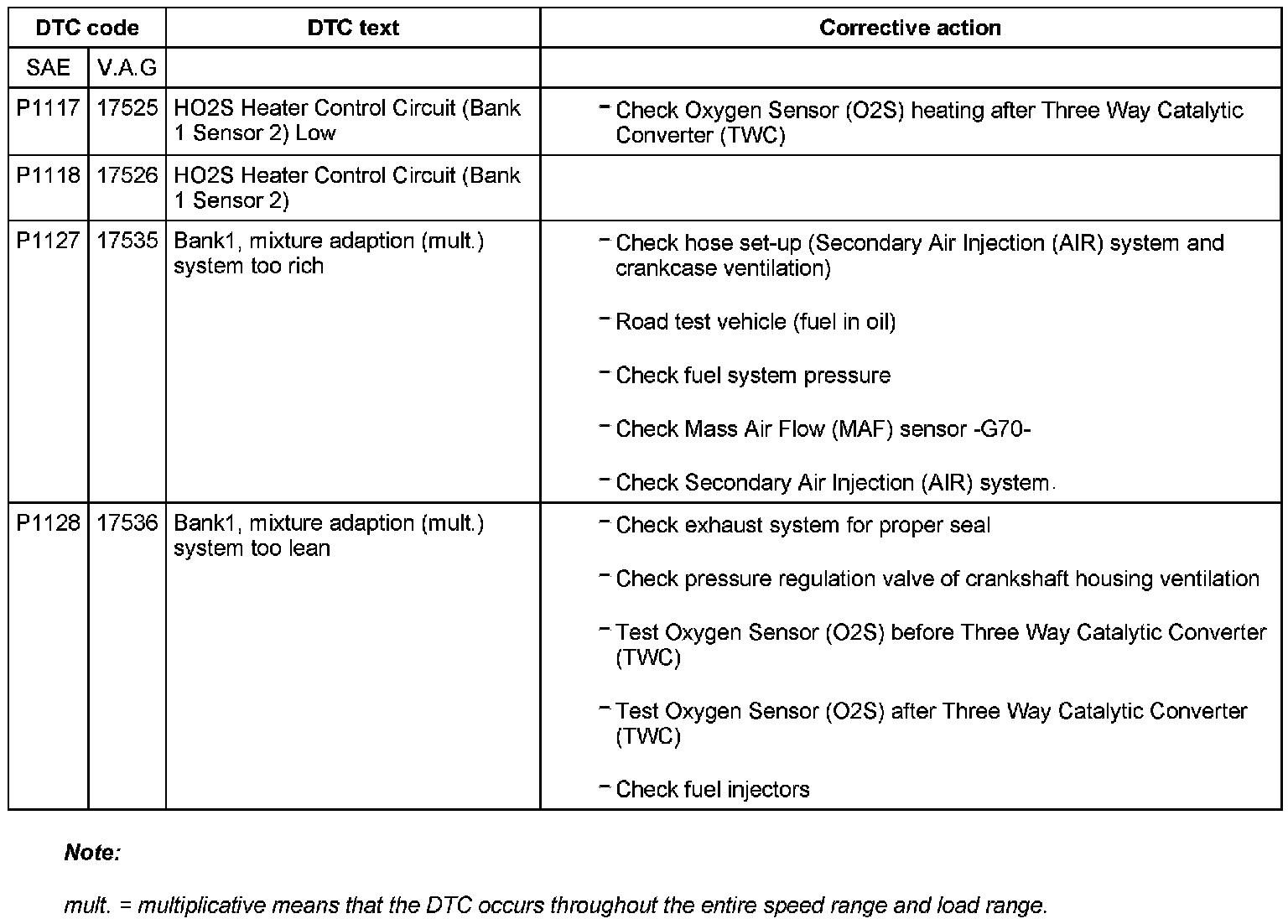 DTC P1117 - P1128: